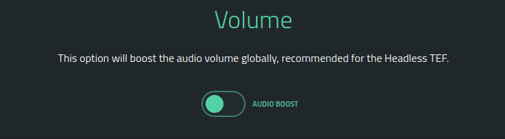 Diferentemente da opção de volume das configurações do Tuner, essa opção apenas adiciona um boost (ganho extra) no volume principal do sistema: