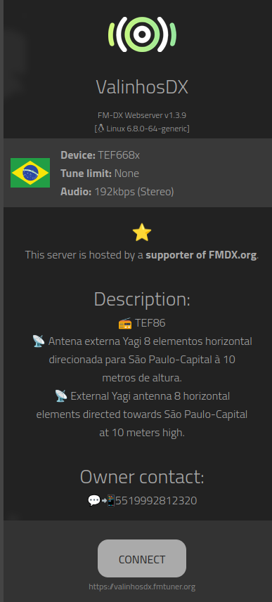 No entanto, esse serviço de conexão é restrito. Conforme mencionei no artigo anterior, você precisa entrar em contato com o pessoal do fmdx.org via Discord e verificar sua disponibilidade.