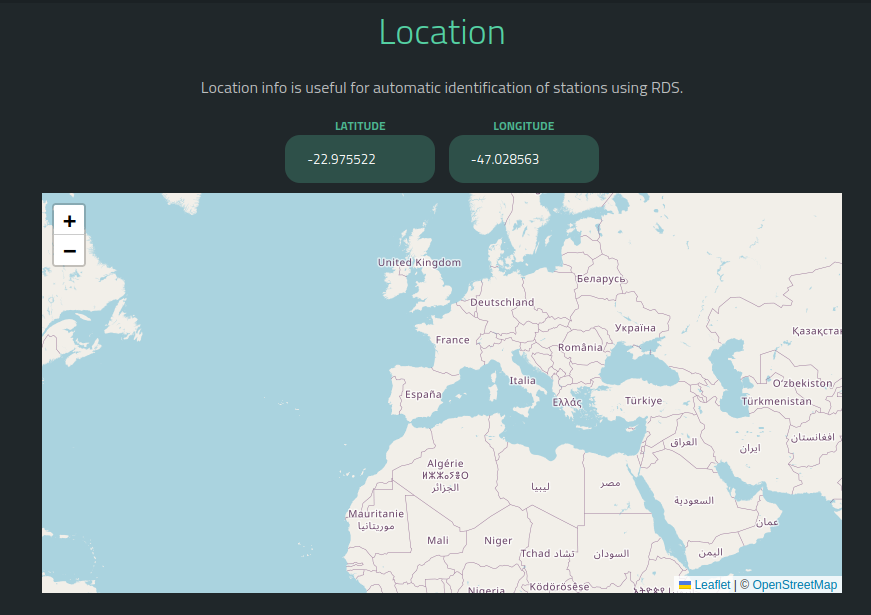 Esta seção é dedicada a configurações de identificação e localização do Fmdx Webserver.