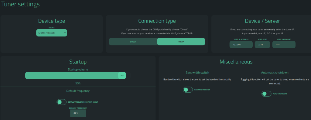 O recurso automatic shutdown, por sua vez, faz com que o Fmdx Webserver desligue o sintonizador do rádio quando não houver mais usuários conectados.