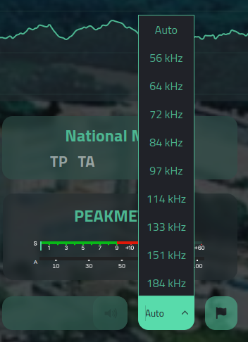 Quando ativado, o bandwidth switch acrescenta um drop menu na interface do usuário que permite alterar a largura de banda da frequência sintonizada: