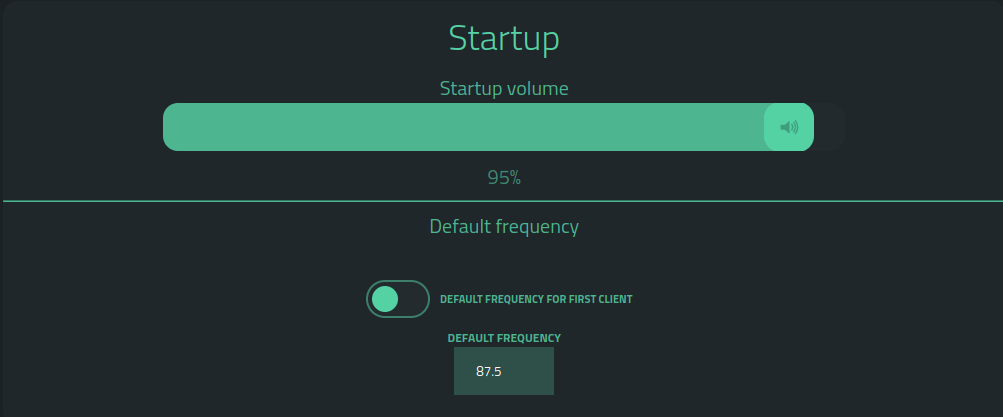 O volume, obviamente, refere-se o volume do streaming dos usuários. Já default frequency permite que você defina uma frequência que o servidor sempre sintonizará após a inicialização.