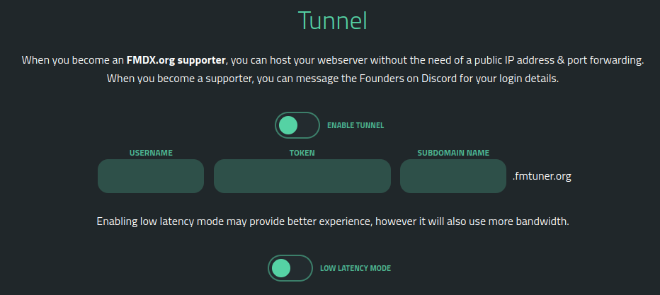 Por fim, o Fmdx Webserver fornece meios de integração com os serviços de FMList e conexão por Túnel.