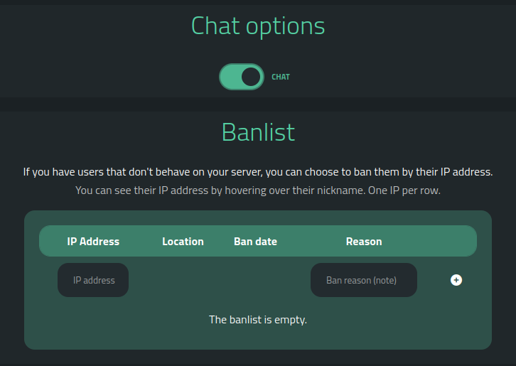 Aqui você pode habilitar ou desabilitar o chat dos usuários e banir aqueles que causam qualquer tipo de problema: