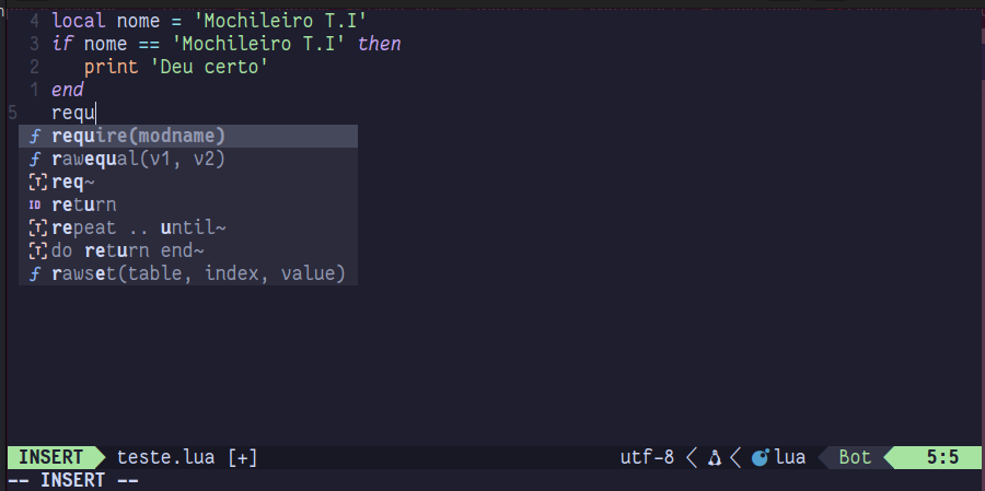 }Salve, saia e entre novamente no Neovim mas, desta vez, aproveite para abrir nosso arquivo de testes escrito em Lua.