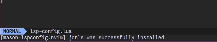 Então basta escolher um servidor (no exemplo escolhi o jdtls) e adicioná-lo no ensure_installed. Na próxima vez que entrar no Neovim, você verá o seguinte na barra de status: