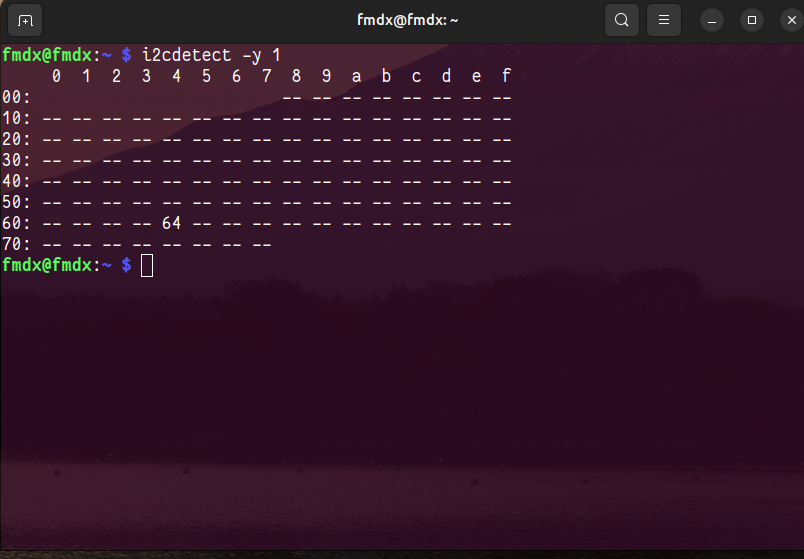Agora, digite o comando i2cdetect conforme abaixo: