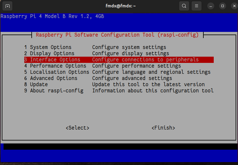 Selecione a opção 3 Interface Options e tecle enter: