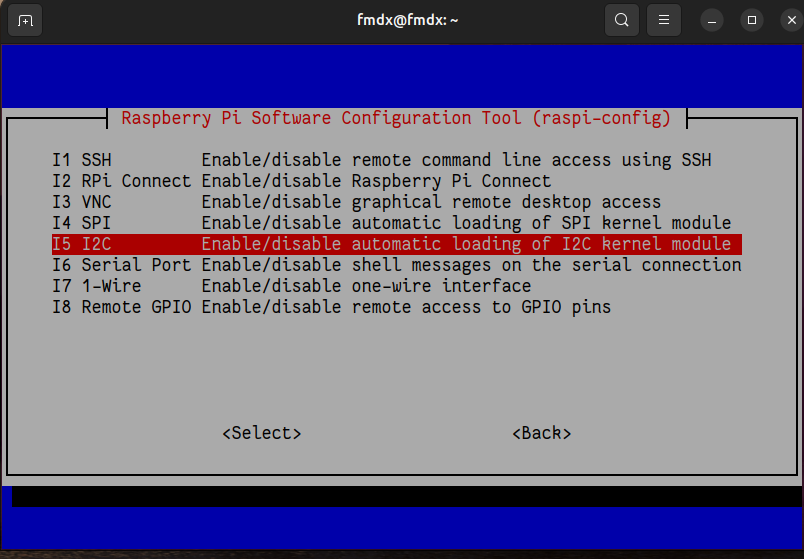 Em seguida, selecione a opção I5 I2C e tecle enter novamente: