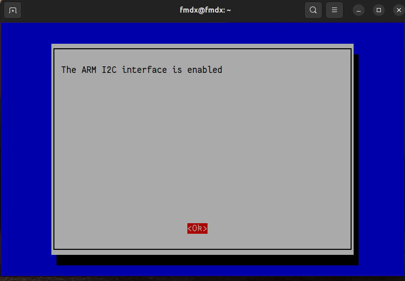 Confirme com <Ok> e saia do raspi-config. Quando habilitado, o Raspberry Pi OS lista o barramento I2C como um novo dispositivo dentro de /dev.